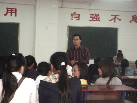 10月12日上午8:00,院长杜祥培在主教学楼210室为外语系09级英语教育专业的学生上了一堂新颖别致的教育学课。