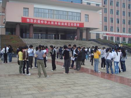 英语晨读早已成为娄底职院一道亮丽的风景,今年的风景更显亮丽。当晨曦初露时,本期口语协会300多名会员就在院文化广场操练,他们以二十人为单位组成十多个活动小组,每组由老师选出口语水平好的同学任组长,带领会员操练。他们有的成群结队,有的席地而坐,时而大声朗读,时而轻声细语,形式多样,尽显风骚。周一、二由组长领读,周三抽读,周四自由讨论,周五背诵。