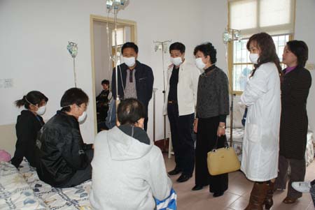 11月10日上午,党委书记陈立楚、副院长宁小玲、刘自斌在后勤处处长李济民、后勤服务中心主任廖婧华陪同下看望了正在医务室进行治疗的学生和奋战在流感抗击一线的医务工作人员。医务室主任潘晓梅告诉记者,从5日到10日,医务室实行24小时值班,5位医护人员每天轮值16小时护理发热病人。陈立楚、宁小玲、刘自斌在了解情况后,告诉学生,不要太担心,甲型H1N1流感病例是可防、可治、可控的。甲流和普通感冒症状和治疗方案是基本是一样的,只是传染较快,一般的发热及时治疗,2-3天可治愈,重症感冒及时治疗5-7天可治愈。大家不要恐慌,只要及时治疗,积极治疗,保持好的心态,我们一定能够战胜疾病。
