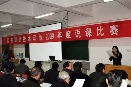 11月21日,由教务处组织的2009年度说课比赛决赛在主教学楼410教室举行。经系部选送,共有22名选手参加决赛。杜祥培、欧友佳、龙伟、刘自斌、袁其谦、邹松建、曾国基等院领导莅临比赛现场。教学督导团全体成员、教务处等职能处室负责人担纲评委。相关部门及各系部负责人、教师代表观摩比赛。体艺系副主任刘轶中主持比赛。