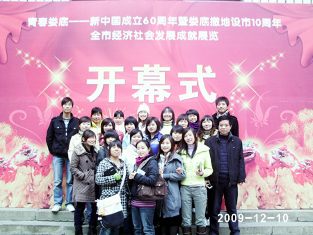 青春娄底,载梦飞翔。近日,由中共娄底市委、市人民政府举办的“青春娄底”――庆祝建国60周年暨娄底撤地建市10周年全市经济社会发展成就展览在市博物馆举行。12月10日,为了让我院学生更好地了解娄底,进一步把课堂理论和实践教学相结合,我院08新闻采编与制作班全体同学在指导老师王宗凡的带领下共同参观了此次展览。