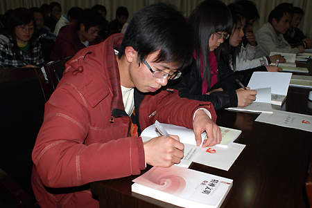 12月22日,我院2009年发展党员培训班在主教楼报告厅开班。近两个小时的时间里,来自我院各系部的234名党员发展对象齐聚一堂,认真聆听了党委书记陈立楚及纪委书记邹松建朴实而又深刻的党课。组织人事处处长李新红、组织科科长封权初、组织科干事谢丽珍及各系部主要负责人也听取了党课。党课培训活动由党委副书记欧友佳主持。