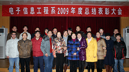 1月6日,电信系在多功能报告厅召开2009年度总结表彰大会。院领导陈立楚、杜祥培、欧友佳、龙伟、袁其谦、邹松建,教务处处长易爱良,组织人事处科长曾述华,以及电信系全体老师和09年度获奖学生出席,表彰会由电信系党总支书记唐毅慈主持。