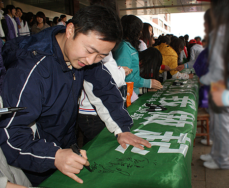 同学们在长幅上签名