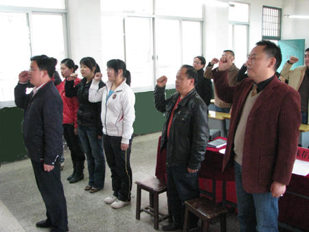 3月31日下午4:30,中共娄底职业技术学院继续教育科研评建支部委员会在第三教学楼202教室举行了入党宣誓大会。院党委委员、副院长周意坚出席,支委成员及全体党员、预备党员,入党积极分子以及各班团支书参加了这次大会。