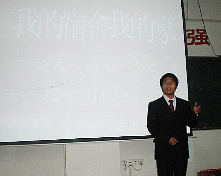 4月9日晚,电信系学生会男女生部在主教学楼310室联合举办了以“我的宿舍我的家”的即兴演讲比赛活动,共57名选手参加,最后11名选手进入决赛。
