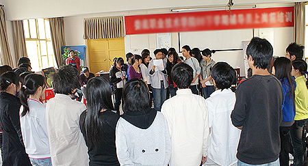 在张岸的指挥下,大家站成两组,面对面地宣读自信感言。一组首先发问:“有没有信心面对打击?”“有!”另一组打开胸腔,高声呐喊。“有没有信心面对挫折?”“有!”“如果失败了,能否承担相关的责任?”“能!”发自内心的呼喊,传达出同学们直面挫折和坎坷,战胜困难,追求成功的信心和决心。