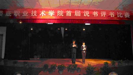 人间四月,泛舟书海。4月29日晚7点,由院团委、学工处举办的首届说书评书比赛在南苑礼堂进行。各系部选送的19名选手的说评书目涉猎到了古今中外的名著名篇,历史、修身、励志、爱国等内容融入其中。选手们对作品进行了深入浅出、见解独到的剖析,激情洋溢、幽默风趣的说评发人深省,现场热烈的掌声一浪高过一浪。财贸系刘颖华、外语系欧冰获得本次比赛一等奖,吴婧等4名同学获二等奖,谭彪等6名学生获三等奖,付亮等7名同学获优胜奖。