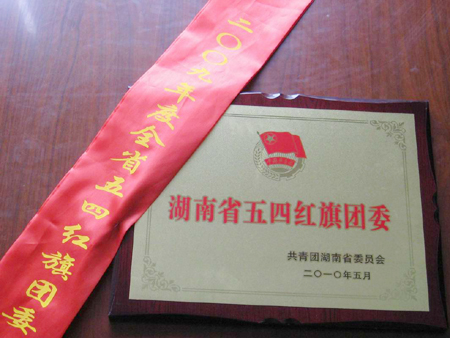 在刚刚结束的湖南省纪念五四运动九十一周年表彰大会上获悉,我院团委荣获“2009年度湖南省五四红旗团委”称号,并作为五家获奖单位代表之一参加大会接受颁奖。(院团委)