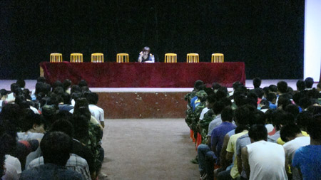 其次,曾主任从新生入校以来面临的4个问题“生活的自理,学习的自觉,目标的自我选择,思想的自我教育”进行了分析,从生活环境的变化角度告诉同学们,如何适应生活环境;为丰富大学生活要选择性的参加社团;告诉大家如何学习,建议同学们多去图书馆,在学好专业知识的同时,更应拓展自己的知识面。曾主任告诉大家要做一个T型的大学生:多和老师交流,多交朋友,学会处理人际关系,学会与室友协调,相互之间多理解,多关心,多帮助;在大学要找到自我,找到支点,认识自我。