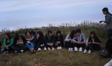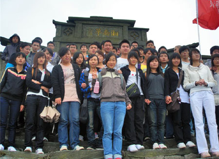 早上雾气弥漫,秋高气爽,是登高望远的好时节。大家早上7:00在校门口集合,在石老师的带领下出发。经过两个多小时的车程,到达凤凰台,即我们登山的起始点。此次我们的目标是海拔1513.6米的岳坪峰,要想征服并不是一件容易的事,所以旅游途中大家相互鼓励和帮助,经过长达3个小时的登山,于12点到达山顶。途中我们没有落下任何人,当所有的同学努力爬到岳坪峰顶的时候都有一种难以言表的成就感,虽然辛苦,但是风景确实特别漂亮,看着浮云和雾气在自己脚下与远处天边溶为一体,大家都有一种从未有过的激动和兴奋。到达山顶后大家拿出自己的干粮一起分享,一起唱歌,一起快乐。