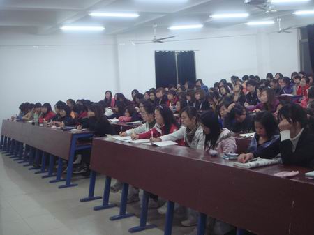 10月26日晚7点,在主教学楼310教室,外语系教学主任邓海燕给08级学生作毕业论文指导讲座。参加讲座的有08级辅导员杨益及08级学生。