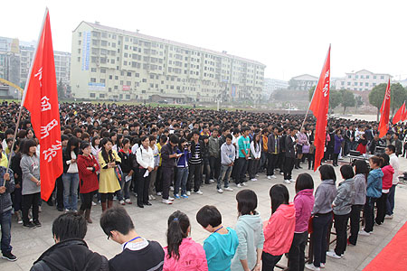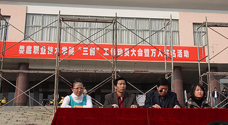 11月4日下午,我院“三创”工作动员大会暨万人签名活动在文化广场举行,院党委委员、副院长刘自斌、学工处处长刘罗仁、院团委书记杨惠梅、后勤服务中心主任廖婧华在主席台就座,刘自斌发表讲话,刘罗仁主持活动,全院六千余名学生参加了活动。