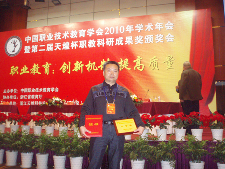 会上宣读了中国职业技术教育学会《关于颁发第二届中国职业技术教育科学研究成果奖的决定》,在总结2006年开展首届职教科研成果奖的基础上,今年又开展了第二届天煌杯职教科研成果奖活动,共评出一等奖10个,二等奖29个,三等奖50个。湖南省共有6项成果获奖,省教育厅系统获奖4项、高职院校仅2所学院获奖。我院徐元俊副研究员申报的《创新高职院校科研管理与提升教师科研素质的研究》获三等奖,并应邀出席了学术年会暨颁奖大会。(高职教育研究所)