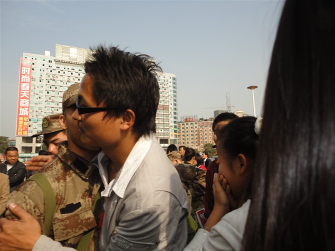 谭铁亮,男,22岁,娄底市双峰县人,财经贸易系08级会计五班学生,第七届系学生会副主席,预备党员。而今,这位先人后己,品德高尚的娄职学子在毕业前夕毅然选择成为一名光荣的人民子弟兵,远赴西藏,报效祖国。得知其突然远征的消息后,财贸系众多学子纷纷请求前往相送。大家的心情都是复杂的,除了对眼前的离别的无奈与不舍,更多的是为有这么一位优秀大学生的骄傲、自豪!大家一路相送,直到火车站,在离别拥抱的时候,同学们个个都泪如泉涌,难舍难分。此时,一首《相亲相爱的一家人》悠扬地从火车站广场响起,久久回荡在每一个人的心间。