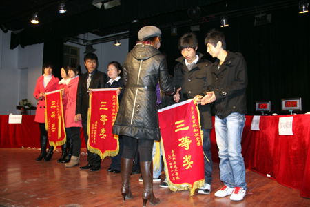 经过激烈的角逐。最终公共事务管理系代表队以总分210分的最高分获得了本次百科知识竞赛的一等奖。建筑与艺术设计系、农林工程系获得了二等奖。资源工程系,外语系和财经贸易系获得了三等奖。继续教育部,机电工程系,电子信息工程系获得了优胜奖。与会领导为他们颁发了锦旗。(许恒)