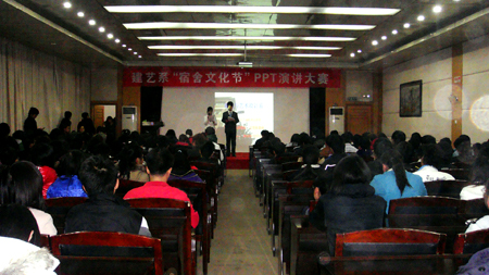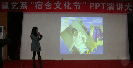 为了展现建艺系学生的宿舍文化,营造健康向上的寝室文化氛围,建艺系学生会主办的“寝室文化节”PPT展示与演讲比赛于2010年12月22日晚7点在主教学楼多功能报告厅拉开帷幕。