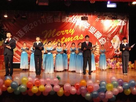 12月24日晚7:00,由外语系倾心策划的2010年圣诞晚会暨08级毕业晚会在南苑礼堂隆重上演。出席晚会的有党委副书记欧友佳、副院长刘自斌、纪委书记邹松建、督导团和各部门负责人及外语系全体师生。此外,娄底市人事局、教育局、公安局、外专局、娄底日报、娄底公共频道的相关领导和记者也应邀观看了演出。
