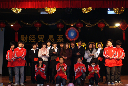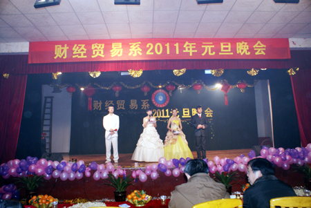 1月4日晚,财经贸易系在南院礼堂迎来了每年一度的元旦晚会。党委副书记欧友佳、副院长刘自斌、纪委书记邹松建、院调研员李天仁、团委书记杨慧梅、财经贸易系党支部书记、主任朱岳坤、副主任朱阳生、张一军及娄底丽人医院领导王凡、杨涵以及全系师生观看了晚会。