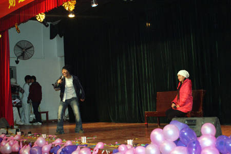 一曲热闹喜庆的舞蹈《好运来》拉开了晚会的帷幕,青春律动的健美操表演《SORRY SORRY》、感动人心的话剧《感恩》、优美动听的二胡独奏《战马奔腾》、诙谐活泼的舞蹈《青春的活力》让台下观众叫好声接连不断。小品《都是QQ惹的祸》更是将晚会推向了高潮,学生们精彩的表演,大胆的反串,幽默搞怪的台词更是将观众的热情带到了最高点。整场晚会时尚青春又不失儒雅与古典,在新年来临之际为领导老师和同学们送上了一场精彩丰富的视觉盛宴。最后,晚会在一首动情的《楚殇》诗朗诵中拉下帷幕。(孙信汛)