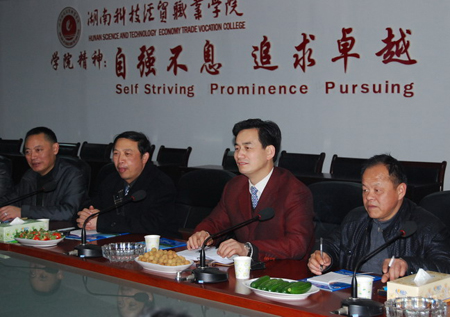 新学期伊始,2月21日-24日,院党委副书记、院长杜祥培亲自带队,副院长周意坚、袁其谦、招生就业处处长朱存斋、副处长蒋根东、中专部主任周志和一行6人行程两千里,跨越两省三地市,赴湖南环境生物职院、湖南科技经贸职院、永州职院、广西职院、南宁职院等兄弟院校,就招生就业、教学管理、学生管理、筹资办学等问题进行调研。兄弟院校的领导们热情接待了杜祥培一行,双方进行了友好而真诚的互动交流。此次调研为我院开展相关工作提供了良好的指导,出行者均表示收获很大。(蒋根东)