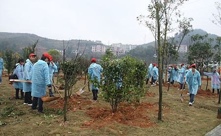 为创建国家园林城市,进一步改善人居环境,娄底市开展了“爱我娄底*绿化家园”树木捐植活动。我院积极响应,以自愿捐植为基本原则,在全院教职工、青年学生中广泛宣传发动,利用网站、广播、报纸、宣传板报、班会活动等形式宣传活动的意义、内容,充分调动了全体师生的积极性。全院上下动员,从院领导到普通教职工们到每位学生,大家纷纷慷慨解囊,从200元到几元,纷纷献上了保护环境、爱护家园的一片爱心。后勤服务处将捐款汇总后,与市创园办联系,共捐购了价值10万余元的树木,包括8颗直径6公分以上的大桂花树,2棵直径20-25公分的桂花树,20株红桎木球、20株茶花树、5株苟骨、5株罗汉松。在植树现场,院领导们亲自动手,为大桂花树培土。青年志愿者们精神焕发,分成几组,铲土、挖坑、扶苗木、培土,几个人配合默契,只见鲜艳的志愿者红帽在树丛中穿梭来往,分外醒目。