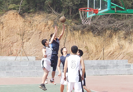 在中阳村白鹭山庄的球场上,我院与娄底五中的篮球争夺战硝烟正漫,由院体艺系主任付鹏亲自督战,队员们一上场就如猛虎下山,迸发出了蓬勃的青春活力,比赛成了我院师生的独角戏,远投、跳投,篮板,一个个干净利落的动作显示了娄职人的精气神,场边的啦啦队也是热情洋溢,呐喊助威。最后我院以84比50的悬殊比分轻松拿下了这场比赛。小伙子们踌躇满志地说:中阳村就是我们的主场,到了这里我们那能够不赢啊。