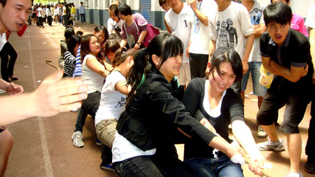 为丰富学生的课余文化生活,增进学生之间的交流,增强学生的凝聚力,培养学生的团队协作能力,4月25日中午,建筑与艺术设计系举办了第五届拔河比赛活动。