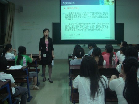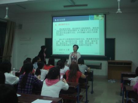 最后刘主任说,实习单位主要以娄底市为中心的9所学校,并强调了实习原因,内容。她要求同学们本着“教书育人”的宗旨去参加实习,不仅要注意课堂教学,还要掌握班级管理技巧。