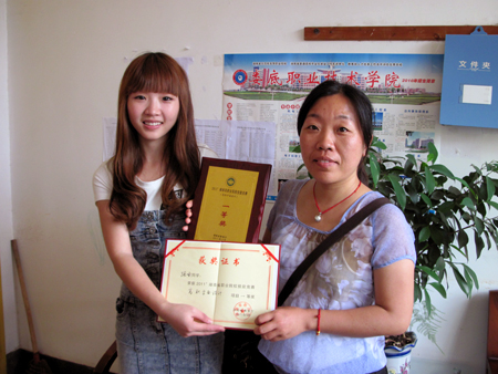 2011年5月5日在系主任夏高彦、专业指导老师彭艳云的带领下,09艺术设计一班两位选手赶往美丽的星城长沙参加2011年湖南省职业院校技能竞赛。经过激烈的竞争,张喻同学喜获一等奖(全省第二名)。我院艺术设计专业自2006年开办起至今,每次参加全省赛事都是载誉而归,先后获得过三个一等奖,四个二等奖,三个三等奖。艺术设计专业在我院只能算一个小专业,为什么能够在每次的竞赛中取得优秀的成绩呢?带着这些疑问,笔者走访了一等奖获得者张喻同学及其指导教师彭艳云老师。