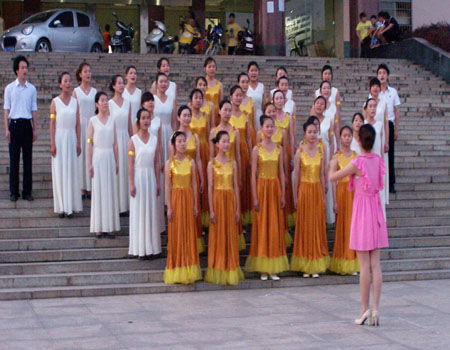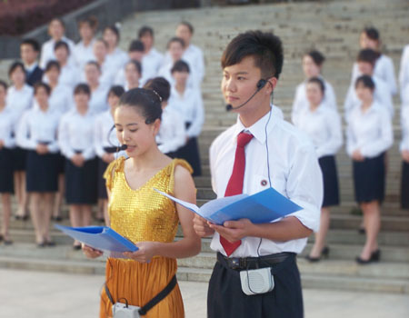 大赛要求院歌为必唱曲目,接着演唱自选歌曲,每个比赛方块队选手精神焕发、激情高亢,娴熟的唱词和各具特色的队形可看出各班同学的精心排练及艺术设计。其中10旅管大一班同学演唱的《大海啊,故乡》还将伴舞和朗诵加入其中,将本次大赛一开始就推向高潮。《明天会更好》、《相亲相爱的一家人》、《二十年后再相会》、《朋友》等青春励志歌曲唱出了我系青年大学生的风采,唱出了团结友爱、积极向上的生活态度,唱出了娄底职院欣欣向荣的景象,经过1个多小时的激烈角逐,09文秘大1班获得大赛一等奖。