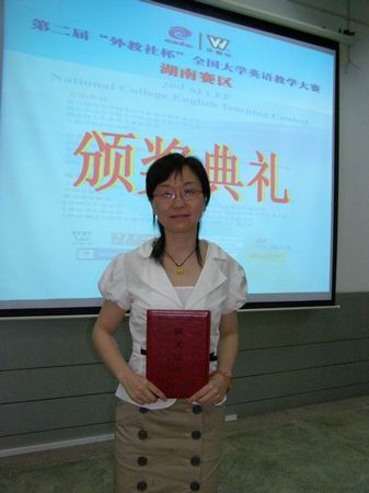 由教育部高等学校外语专业教学指导委员会、教育部高等学校大学外语教学指导委员会和上海外语教育出版社共同主办的第二届“外教社杯”全国大学英语教学大赛湖南省赛区比赛5月15日在国防科技大学落下帷幕。我院外语系教师邓海燕过关斩将、杀入决赛,最终取得综合组二等奖的佳绩。