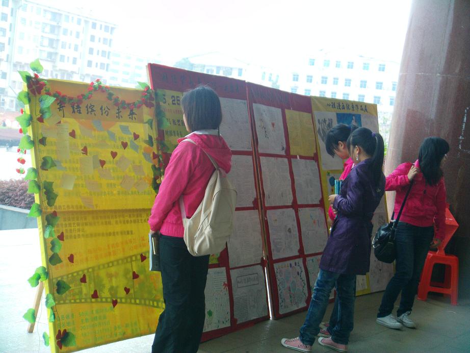 活动中,用展板展出了财贸学子们精心绘制的关于心理健康的手抄报与漫画,看着那一张张内容丰富、形式新颖的手抄报以及那一幅幅色彩鲜明、幽默生动的心理漫画,驻足的师生都会心地笑了。展板的旁边,我系的心理健康志愿者们给过往的师生派发了“心愿小贴纸”,大家都很高兴地写下了各自的美好心愿与对未来的憧憬,并贴在“寄语缤纷未来”的展板上。