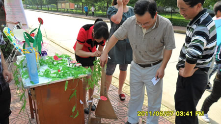 副院长刘自斌,学工处处长张一军,副处长罗丽萍、江国元、戴志鹏,机电系党总支书记陈育新,农林系学工主任易瑜,团总支书记王琦亲临展场,对作品予以了很高评价。各系受邀来担任评委的同学投票之余不忘用手机把自己喜爱的展品拍下留念。被吸引来的老师、同学和附近居民也不时发出阵阵赞叹“不错,不错,太美了!”