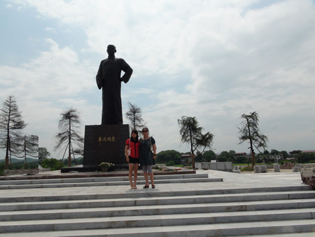 随后,队员们驱车前往陶铸故居。陶铸故居系省级爱国主义教育基地、湖南省十大文化遗产。景区里有从唐大历年间至民国存的300多人的诗、词、书、画、题词石刻505方。此处的苍崖石壁,濒临湘江,巍然突兀,连绵78米,为南国摩崖第一家,为神州一颗璀璨的文化明珠。浯溪摩崖诗文书法,博大精深,具有丰富的文化内涵,历时千百年,享誉海内外。无产阶级革命家陶铸的《东风》诗碑和《踏莎行》词碑相继在景区树立,陶铸铜像和陶铸革命事迹陈列馆也坐落于此处,千年古迹更添胜景。到达陶铸同志铜像广场后,小分队在陶铸铜像前鞠躬敬礼,表达了对伟人的敬仰之情。随后我们参观了陶铸同志革命事迹陈列馆。陶铸同志出生于湖南祁阳县,是中国共产党的优秀党员,坚定的马克思主义者,久经考验的无产阶级革命家,忠诚的共产主义战士,党和军队卓越的政治工作者,党和国家的优秀领导人。通过对陶铸同志坎坷一生的了解,我们对老一辈无产阶级革命家的忠于革命忠于人民的精神肃然起敬。