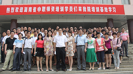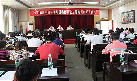 7月13日,来自长沙、永州、邵阳、怀化、衡阳、岳阳、株洲等地54名中职教师聚集在我院,参加了我院2011年中等职业学校专业教师培训基地第二期省级培训。院长杜祥培、副院长刘自斌、袁其谦出席开班仪式,袁其谦主持仪式,教务、财务、保卫、宣传、后勤等部门和机电系主要负责人参加了仪式。