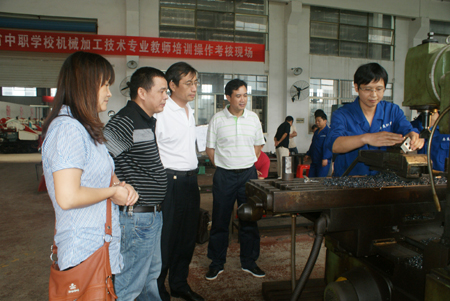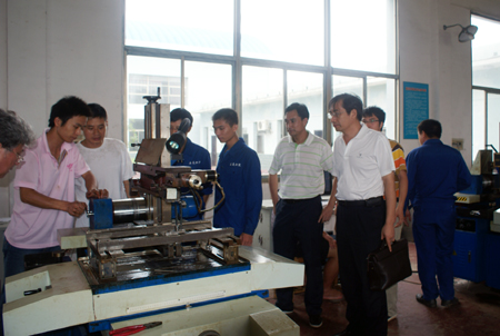 李明亮一行在我院机电系主任张海筹陪同参观了学员学习场所、实训工厂等地,参观期间李明亮对学员的学习情况很是关心,向我院指导老师了解该校学员学习情况及生活情况,并仔细参观了解了学员在培训使用的设备机械。李明亮一行对我院为举办此次中职教师培训所做的努力纷纷表示敬意与感谢。(孙信汛)