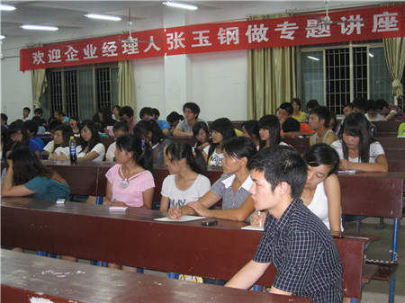 此次讲座主讲人是深圳市东宝软件信息技术有限公司市场部经理张玉钢,他拥有11年从业经验、7年企业管理经验,曾创办易维、天翼软件(自主经营)两家企业,对营销行业人才的需求、营销人才素质要求以及人才培养方式有着独特的见解。张经理根据自己的亲身经历,讲述了如何根据自己的性格和爱好做职业规划,选择自己喜欢的工作。讲座最后,张经理就如何找到心仪的工作提出了几点建议:一、足量的知识作储备;二、多积累资源、尤其是人脉资源;三、多参与社会实践;四、学会职场生存的能力,与人为善;五、加强团队协作能力,培养自己独特的思维能力。