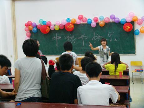 9月12日(农历8月15日),我国传统佳节?D?D中秋节,在这个思乡的日子里,不少新生都因为是第一次离家在外过节,不免对家人怀着深深地思念之情。我系辅导员组织新生班级在主教楼举办了中秋晚会活动,通过活动让各位同学感受到家的感觉。