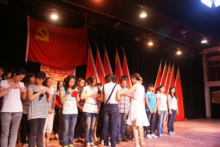 党总支书记蒋美群宣读了2011年上学期新党员名单,由学生党支部组织委员曾怡华老师的带领38名预备党员面对党旗进行了入党宣誓仪式,学生党支部宣传委员成柳才老师给大家颁发了党徽和党章,全场掌声雷动,对他们给予了高度肯定以及表示热烈的祝贺。预备党员代表陈冰冰发言,表达了为党的伟大事业奋斗终生的决心,树立党员意识,努力成为一名优秀的共产党员。入党积极分子11级新生代表陈贝丛分享了进入大学后的感受,表示自己正积极向党组织靠拢,争取像学姐学长们一样成为党的一份子。