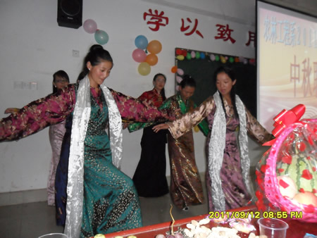 晚会在畜牧班和规划班共同准备的诗朗诵、小合唱《水调歌头*明月几时有》中拉开帷幕。本次晚会节目精彩纷呈,来自全国各地六个民族的同学上台表演了具有本民族特色的节目:土家族的女生二重唱《大山的木叶》刚唱罢,藏族男生便送上了一首四重唱《祝酒歌》、汉族小伙们不甘示弱来了个小合唱《我们的好兄弟》;汉家姑娘们来个歌伴舞《我们的108》,藏家“卓玛”们就来个《锅桩舞》……一个个精彩的节目引来台下阵阵掌声,把晚会推向一个又一个高潮。观众互动的小游戏《踩汽球》、《抢凳子》等活动,为现场营造了浓郁的节目气氛。
