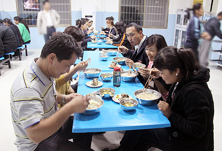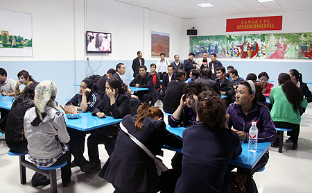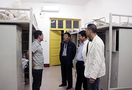 安顿好行李,院领导还陪同学员们一起来到特设的清真食堂,全新的餐桌椅、厨具、餐具、空调、液晶电视等,又让学员们深感惊讶。尤其是特意从新疆请来的厨师夫妻阿不都热苏力•热依木和哈力旦木•买买提端上熟悉的拉面、手抓羊肉、清茶时,学员们脸上写满了感激与满足。领队夏庆国与辅导员祖合热•依米提握住我院领导们的手,不停地说“谢谢你们,安排得太周到了”。