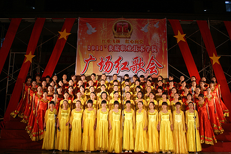 青春娄职,群英争妍。9月29日晚,由我院团委、学工处主办的“红歌飞扬,红心向党”广场红歌会在文化广场隆重举行。副院长周意坚、刘自斌、纪委书记邹松建、工会主席曾国基、正处级干部向右铭、学工处、团委的全体工作人员、各系学工主任、新生班级辅导员与我院2011级全体新生观看了盛会。
