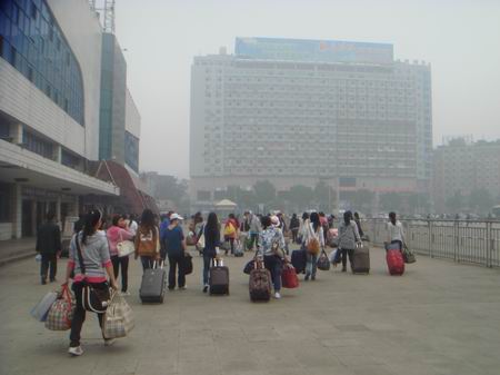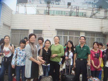 2011年10月12日上午10:30,外语系10级学生北京天津工学结合的全体同学在指导老师李红的带领下,乘坐T87次列车胜利返娄。系主任刘燕、副主任贺建良、干事陈秀丽、辅导员周春红老师及部分学生会干部亲临火车站迎接。师生相见,喜悦之情溢于言表,同学们高呼:“我们回家了。”