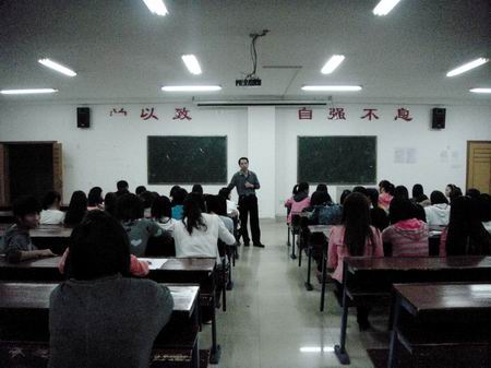 10月16日晚6:00,外语系在主教学楼610教室召开新老干部培训讲座。学工主任贺建良、学生干事陈秀丽老师及学生会全体成员参加.