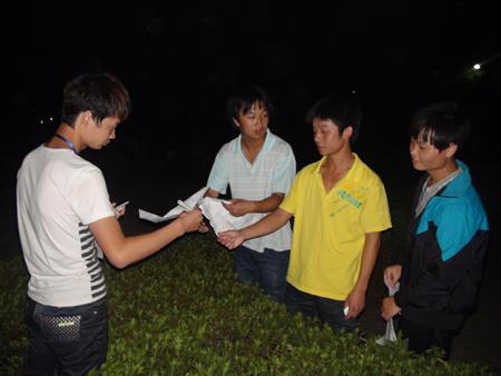 随着易瑜宣布“农林工程系第二届‘爱我校园’夜间定向越野比赛正式开始!”参赛的24支队伍每隔1分钟一组,分10条路线开始了他们充满激情、冒险和乐趣的寻秘娄职之旅。活动期间参赛选手团结一致、争分夺秒、斗智斗勇,根据地图上标志的路线,找到目标点。在每个目标点,队员们有四次回答工作人员提问的机会,30秒内正确做答得到相应积分。最后以累计积分最高同时同组队员用时少定胜负。整个活动历时一个多小时,参赛队员们大汗淋漓,脸上露出的是喜人的笑容,似乎还沉浸在活动的奇妙旅程中。