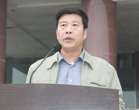 刘自斌致辞,他指出本次职业体验是我院在培养高素质技能型人才过程中的一次成功体验。一是提升同学们思想道德素质的有效平台,二是我院职业文化建设中的一项重要内容。刘自斌还指出我院学生在企业开展职业体验可以收获到课堂上学不到的东西,增强我们的动手能力,提高专业技能,提高对理论知识的理解能力。