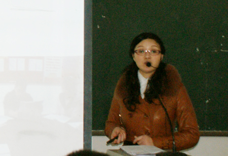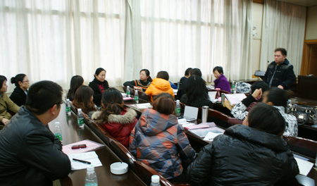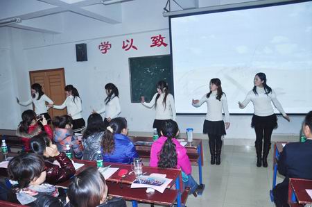 下午,我院外语系进行了专业特色示范。刘燕主任进行了以工学结合为主题的经验介绍讲座,从工学结合概况、具体做法以及收获体会等三方面作了详尽具体的讲解,目的是让学生学会做人做事,以提高学生的职业道德和职业素质。周志军老师进行了应用英语专业说课,从专业概况、专业建设完成情况、专业特色、专业设想等方面介绍了我院应用英语专业的人才培养情况。09级应用英语专业学生上了一堂小学英语示范课,09级的6位学生还表演了融英语语言、动作、表情于一体的情景剧《白雪公主》。我院的这四个特色项目获得了各位老师的高度赞扬。
