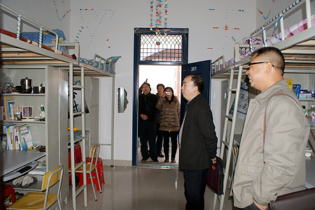 汇报会前,肖永新一行逐一视察了我院校园、食堂、学生公寓等处,对我院创建“卫生校园、文明校园、园林校园”的三创工作给予了充分肯定。