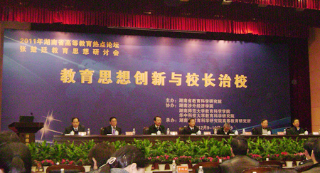 这次研讨会是一个高规格的学术会议,与会代表围绕“教育思想创新与校长治校”这一主题,结合张楚廷教育思想与实践进行了广泛而深入的研讨。省教育厅党组成员、省教科院院长姜正国在会上致欢迎词,省教育厅党组成员、副厅长申纪云出席会议并讲话。厦门大学副校长、博士生导师邬大光教授,华中科技大学教育科学院院长、博士生导师张应强,浙江师范大学教育科学院院长、博士生导师眭一凡,北京大学教育学院院长、博士生导师文东茅,华中科技大学教授周光礼,湖南涉外经济学院执行校长李钊博士等十余名省内外知名学者出席会议并作专题报告。(辜桃)